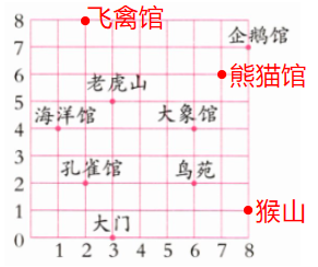猴山(8,1) 熊猫馆(7,6) 飞禽馆(2,8)