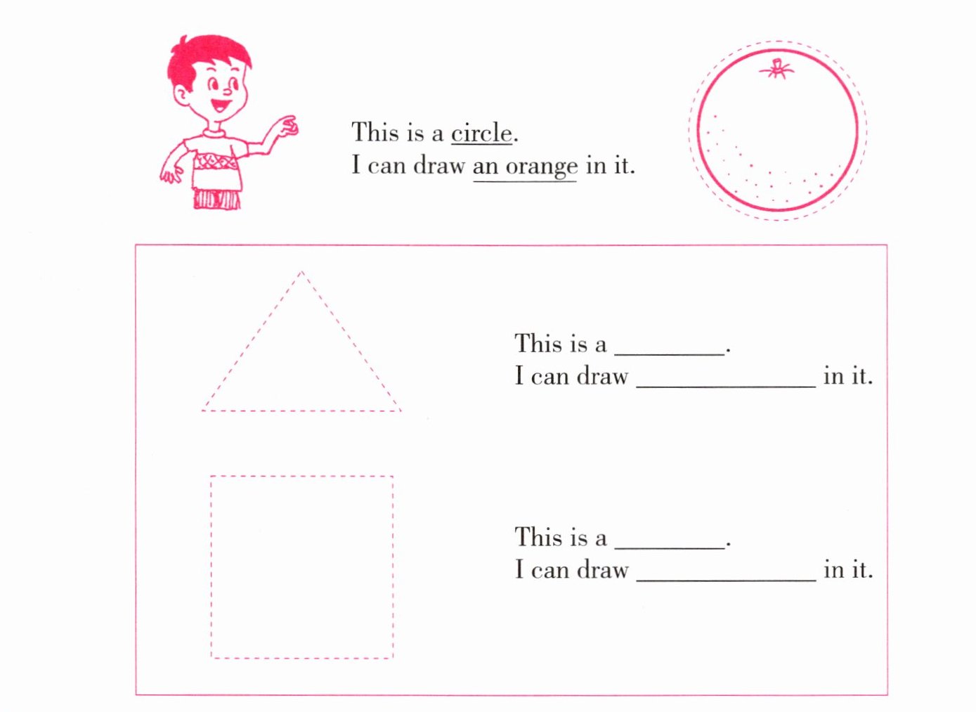 This is a triangle. I can draw a roof in it. This is a square. I can draw a handkerchief in it.