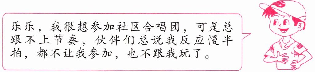 贝贝,别灰心呀!你可以多听合唱歌曲熟悉节奏,跟着节拍器从慢到快练习。然后主动和伙伴们说你会努力练习,让他们再给你机会,你努力练习后肯定能跟上节奏,伙伴们也会愿意和你一起玩一起参加合唱啦。