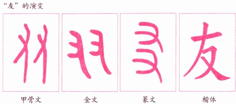 3 乐乐和贝贝是好朋友,那你知道朋友中的“友”这个字是怎么演变来的吗?