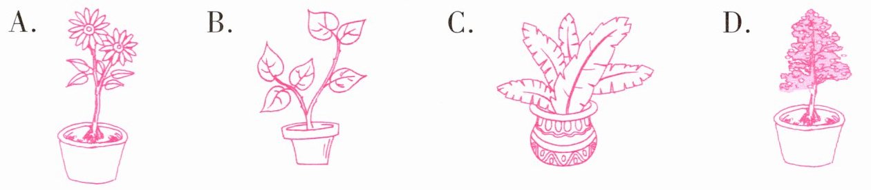 乐乐旁边的一位朋友卖的是盆栽。他的顾客需要的是哪种盆栽呢?请和他一起帮顾客选出合适的盆栽吧!(圈出正确的图片