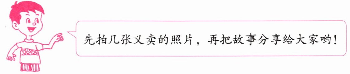 示例:在义卖准备时,我们小组一起精心布置摊位,把物品摆放得整整齐齐。义卖开始后,我看到一位小朋友拉着妈妈的手在我们摊位前看了很久,我赶紧微笑着给他们介绍,最后小朋友买了一个小玩偶,开心地跑开了,那一刻我觉得特别有成就感。还有一位老爷爷,他对我们的义卖活动很感兴趣,和我们聊了很多,还买了好几件物品,还夸我们有爱心。(答案不唯一,可根据实际情况编写)