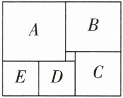 则正方形$C$的边长为$x$,正方形$E$的边长为$x$,正方形$B$的边长为$x + 1$,正方形$A$的边长为$x+2$。