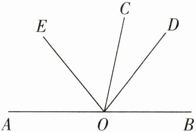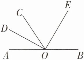 2. 如图,点A,O,B在同一直线上,$\angle BOC=78^{\circ}$,$\angle DOE=77^{\circ}$,OD是$\angle BOC$的一条靠近OC边的三等分线。