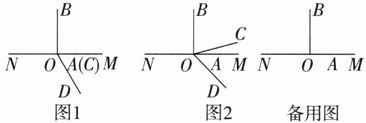 8. 已知$\angle AOB=90^{\circ}$,$\angle COD=60^{\circ}$,按如图1所示摆放,将OA,OC边重合在直线MN上,OB,OD边在直线MN的两侧。