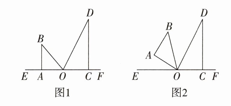 9. 一副三角板按如图1方式拼接在一起,其中边OA,OC与直线EF重合,$\angle AOB=45^{\circ}$,$\angle COD=60^{\circ}$。