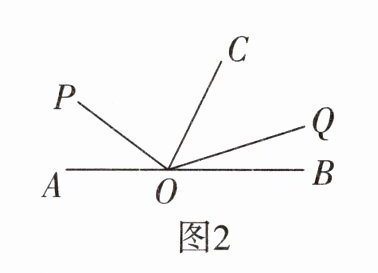 (2)如图2,点A,O,B在同一条直线上,OC为一条射线,OP,OQ分别为$\angle AOC$与$\angle BOC$的4分位线($\angle COP>\angle POA$,$\angle COQ>\angle QOB$)。