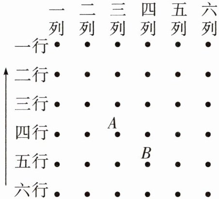 2. 如图,一方队正沿箭头所指的方向前进,A的位置为三列四行,表示为(3,4),那么B的位置是 ( )