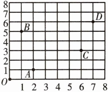 解:$A(2,1)$ $B(1,5)$ $C(6,3)$ $D(7,6)$ $O(0,0)$