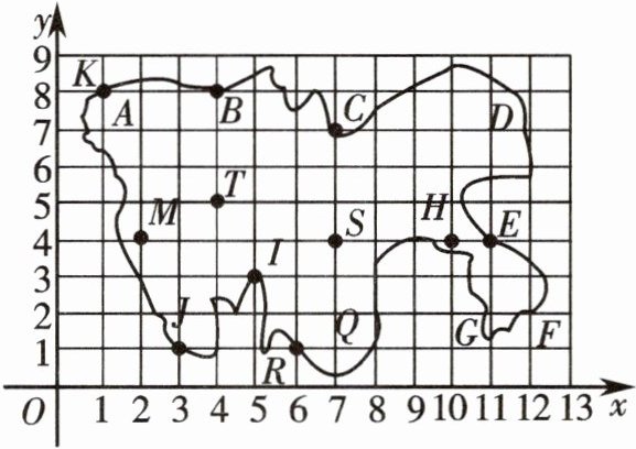 (2)点(2,4),(5,3),(7,7)所代表的地点分别为点______.