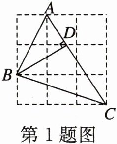 1. (陕西)如图, 在 $ 3 × 3 $ 的网格中, 每个小正方形的边长均为 1, 点 $ A, B, C $ 都在格点上, 若 $ B D $ 是 $ \triangle A B C $ 的高, 则 $ B D $ 的长为 (