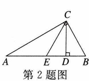 2. (新疆)如图, 在 $ \mathrm{Rt} \triangle A B C $ 中, $ \angle A C B= 90^{\circ} $, $ \angle A= 30^{\circ}, A B= 4, C D \perp A B $ 于点 $ D, E $ 是 $ A B $ 的中点, 则 $ D E $ 的长为 (