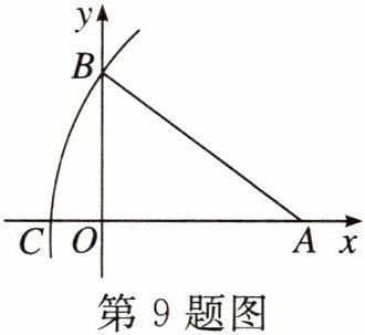 9. (自贡)如图, $ A(8,0), C(-2,0) $, 以点 $ A $ 为圆心, $ A C $ 长为半径画弧, 交 $ y $ 轴正半轴于点 $ B $, 则点 $ B $ 的坐标为 (