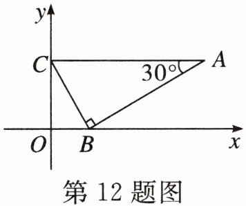 12. (海南)如图, $ \triangle A B C $ 的顶点 $ B, C $ 的坐标分别是 $ (1,0),(0, \sqrt{3}) $, 且 $ \angle A B C= 90^{\circ}, \angle A= $ $ 30^{\circ} $, 则顶点 $ A $ 的坐标是______