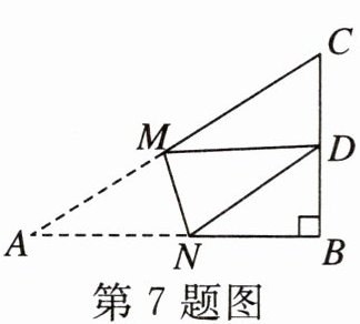 7. 如图,$Rt\triangle ABC$中,$AB= 18$,$BC= 12$,$∠B= 90^{\circ}$,将$\triangle ABC$折叠,使点$A与BC的中点D$重合,折痕为$MN$,则线段$BN$的长为(