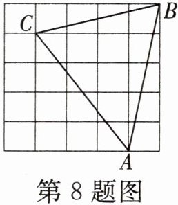 8. 如图,正方形网格中每个小正方形的边长都是1,则$\triangle ABC$中边长为有理数的边数为(