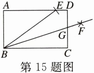 15. (锦州)如图,在矩形ABCD中,$AB= 6,BC= 10$,以点B为圆心、BC的长为半径画弧交AD于点E,再分别以点C,E为圆心、大于$\frac {1}{2}CE$的长为半径画弧,两弧交于点F,作射线BF交CD于点G,则CG的长为