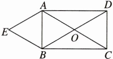 证明:$ \because B E // A C $,$ A E // B D $,$ \therefore $ 四边形 $ A O B E $ 是平行四边形。$ \because $ 四边形 $ A B C D $ 是矩形,$ \therefore A C = B D $,$ O A = \frac { 1 } { 2 } A C $,$ O B = \frac { 1 } { 2 } B D $,$ \therefore O A = O B $,$ \therefore $ 四边形 $ A O B E $ 是菱形。
