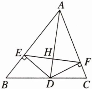 22. (12分)如图,AD是$\triangle ABC$的角平分线,$DE⊥AB$,$DF⊥AC$,垂足分别是E,F,连接EF,EF与AD相交于点H.