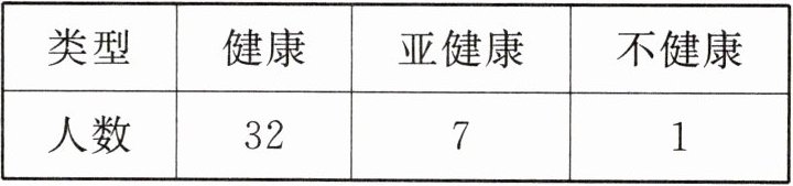 1. (乐山)在一次心理健康教育活动中,张老师随机抽取了40名学生进行了心理健康测试,并将测试结果按“健康”“亚健康”“不健康”绘制成下列表格,其中测试结果为“健康”的频率是(