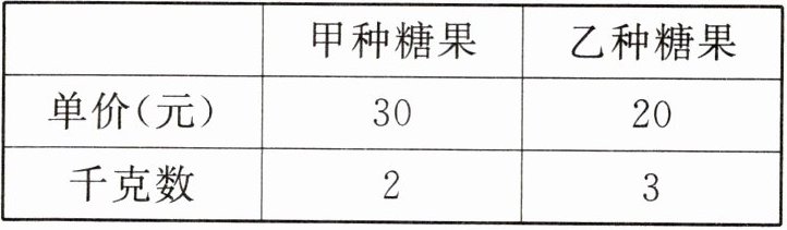 11. (杭州)现有甲、乙两种糖果的单价与千克数如下表所示.