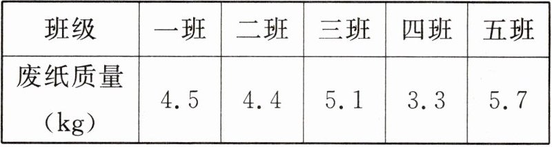 3. (苏州)为增强学生的环保意识,共建绿色文明校园,某学校组织“废纸宝宝旅行记”活动.经统计,七年级5个班级一周回收废纸的情况如下表: