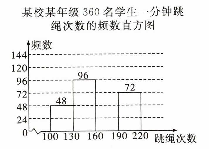 某校某年级360名学生一分钟跳绳次数的频数直方图