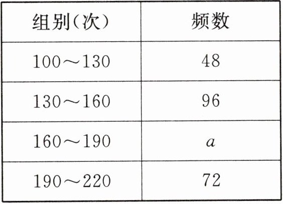 某校某年级360名学生一分钟跳绳次数的统计表