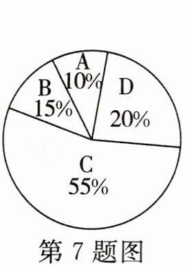 7. 某超市销售A,B,C,D四种矿泉水,它们的单价依次是5元、3元、2元、1元,某天的销售情况如图所示,则这天销售的矿泉水的平均单价是(