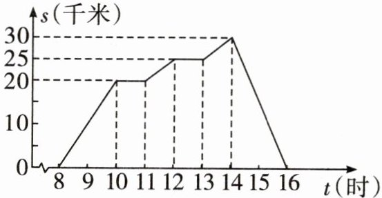 19.周末,小李8时骑自行车从家里出发,到野外郊游,16时回到家里,他离开家后的距离s(千米)与时间t(时)的关系可以用图中的曲线表示,根据这个图象回答下列问题: