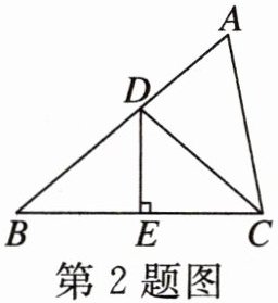 2.(梧州)如图,DE是$\triangle ABC$的边BC的垂直平分线,分别交边AB,BC于点D,E,且AB= 9,AC= 6,则$\triangle ACD$的周长是 (