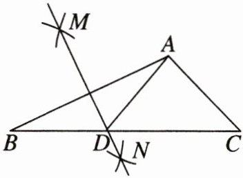 4.如图,在$\triangle ABC$中,$BC= 9,AC= 4$,分别以点A,B为圆心,大于$\frac {1}{2}AB$的长为半径画弧,两弧相交于点M,N,作直线MN,交BC边于点D,连接AD,则$\triangle ACD$的周长为