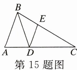 15.(宿迁)如图,在$\triangle ABC$中,$∠A= 70^{\circ },∠C= 30^{\circ }$,BD平分$∠ABC$交AC于点D,$DE// AB$,交BC于点E,则$∠BDE$的度数是 (