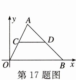 17.(南京)如图,在平面直角坐标系中,$\triangle AOB$的边AO,AB的中点C,D的横坐标分别是1,4,则点B的横坐标是____