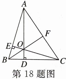 18.(聊城)如图,在$\triangle ABC$中,$AD⊥BC,CE⊥AB$,垂足分别为点D和点E,AD与CE交于点O,连接BO并延长交AC于点F,若$AB= 5,BC= 4,AC= 6$,则$CE:AD:BF$值为
