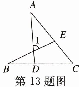13.(陕西)如图,点D,E分别在线段BC,AC上,连接AD,BE.若$∠A= 35^{\circ },∠B= 25^{\circ },∠C= 50^{\circ }$,则$∠1$的大小为 (