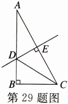 29.如图,在$Rt\triangle ABC$中,$∠A= 30^{\circ }$,DE垂直平分斜边AC,交AB于点D,E为垂足,连接CD,若$BD= 1$,则AC的长是 (