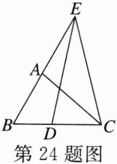 24.如图,$\triangle ABC$中,$∠B= 60^{\circ },BA= 3,BC= 5$,点E在BA的延长线上,点D在BC边上,且$ED= EC$.若$AE= 4$,则BD的长为____