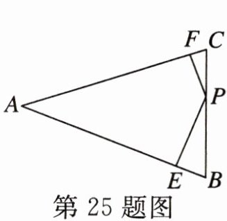 25.(娄底)如图,$\triangle ABC$中,$AB= AC= 2$,P是BC上任意一点,$PE⊥AB$于点E,$PF⊥AC$于点F,若$S_{\triangle ABC}= 1$,则$PE+PF= $