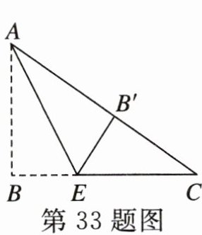 33.如图,在$Rt\triangle ABC$中,$∠B= 90^{\circ },AB= 3,BC= 4$,将$\triangle ABC$折叠,使点B恰好落在斜边AC上,与点$B'$重合,AE为折痕,则$EB'= $