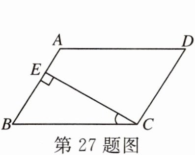 27. 如图,在平行四边形ABCD中,$CE⊥AB$,E为垂足.如果$∠A= 125^{\circ }$,则$∠BCE= $