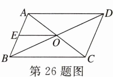 26. (湘潭)如图,在▱ABCD中,对角线AC,BD相交于点O,点E是边AB的中点.已知$BC= 10$,则$OE= $