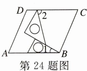 24. (荆门)将一副直角三角尺在▱ABCD中按如图所示的方式摆放,若$∠1= 30^{\circ }$,则$∠2$的度数为(