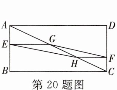 20. 如图,在矩形ABCD中,$AB= 3,BC= 6$,若点E,F分别在AB,CD上,且$BE= 2AE,DF= 2FC$,G,H分别是AC的三等分点,则四边形EHFG的面积为(
