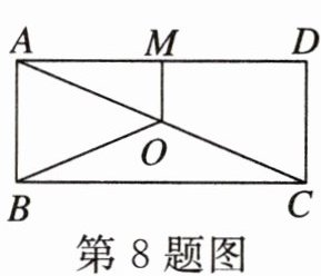 8. (十堰)如图,O是矩形ABCD的对角线AC的中点,M是AD的中点,若$AB= 5,AD= 12$,则四边形ABOM的周长为______