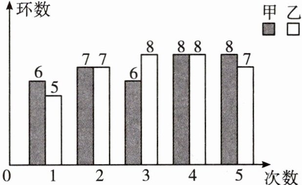 12. 在某次军事夏令营射击考核中,甲、乙两名同学各进行了5次射击,射击成绩如图,则这两人中水平发挥较为稳定的是