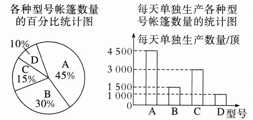 16. (云南)2020年以来,我国部分地区出现了新冠疫情,一时间,疫情就是命令,防控就是责任,一方有难,八方支援.某公司在疫情期间为疫区生产A,B,C,D四种型号的帐篷共20000顶,有关信息见如下统计图: