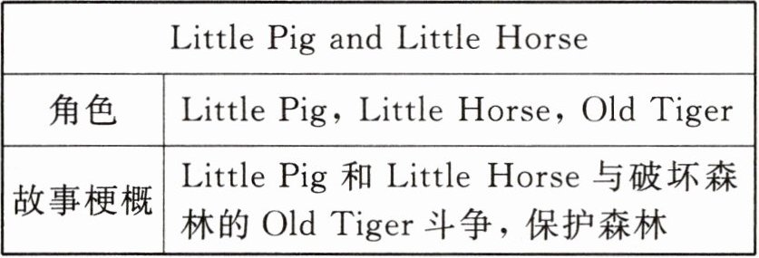 Xiaojie likes cartoons very much. And he has watched lots of cartoons. He also likes making up stories. And lots of his friends love his stories. Little Pig and Little Horse is one of them. In this story, there are three main characters—Little Pig, Little Horse and Old Tiger. Old Tiger is very bad. He keeps cutting trees. Little Pig and Little Horse are friends. They are very smart. To protect the forest, they keep fighting Old Tiger.