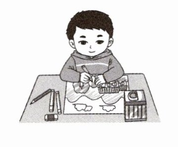 二、Look and match. 下面几个小朋友分享了自己向家人表达爱的方式。请你看一看,根据图片提示连一连。