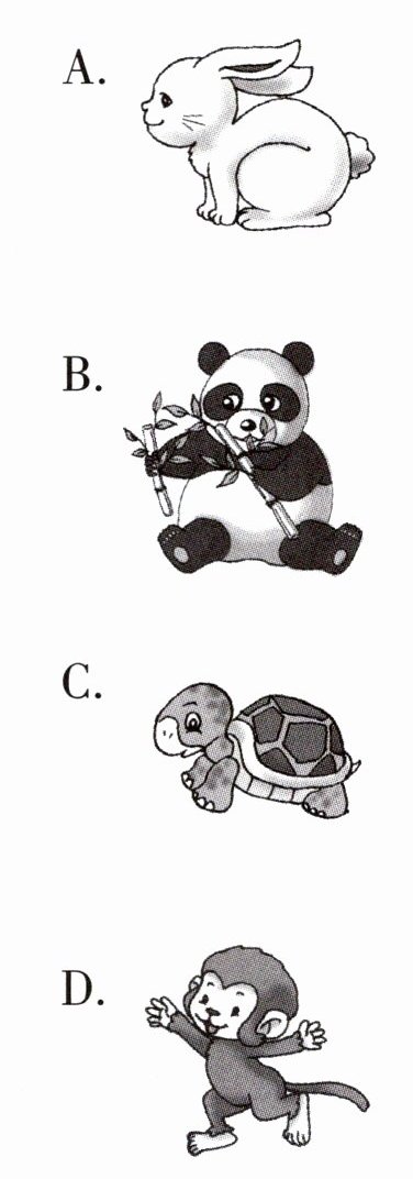 一、Read and match. 老师让同学们分别用一句话说一说下面右边这些动物的特征。以下几位同学分别描述的是哪个动物呢?请你读一读,连一连。